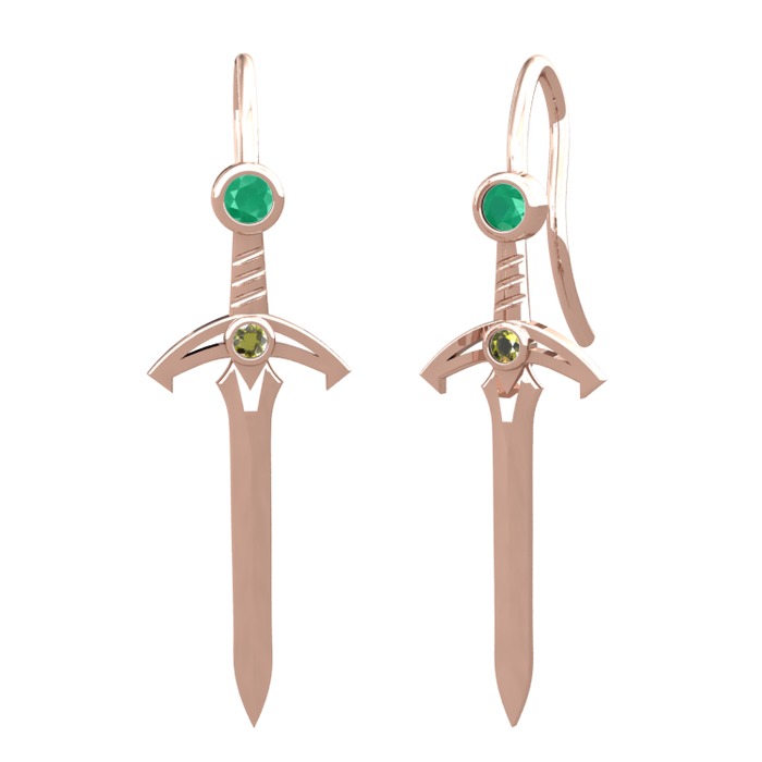 Kök zümrüt ve peridot 14 ayar rose altın küpe