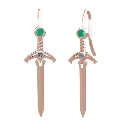 Kök zümrüt ve pırlanta 8 ayar rose altın küpe (0.072 karat)