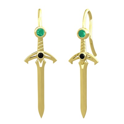 Kök zümrüt ve siyah zirkon 8 ayar altın küpe