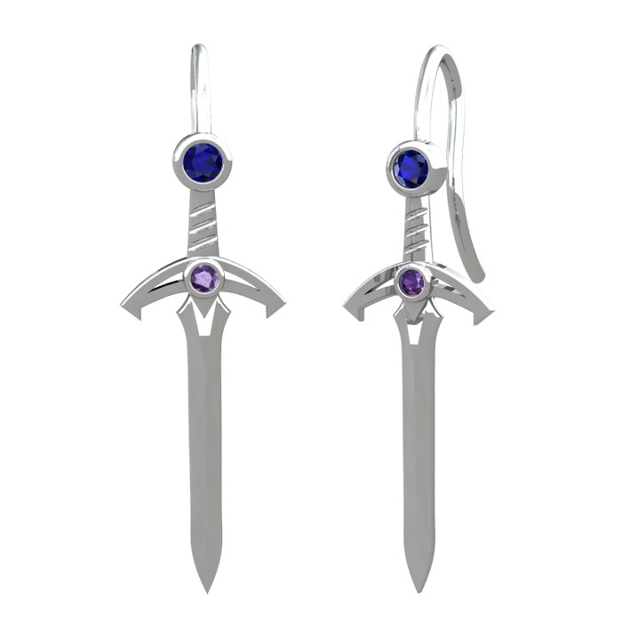 Lab safir ve ametist 14 ayar beyaz altın küpe