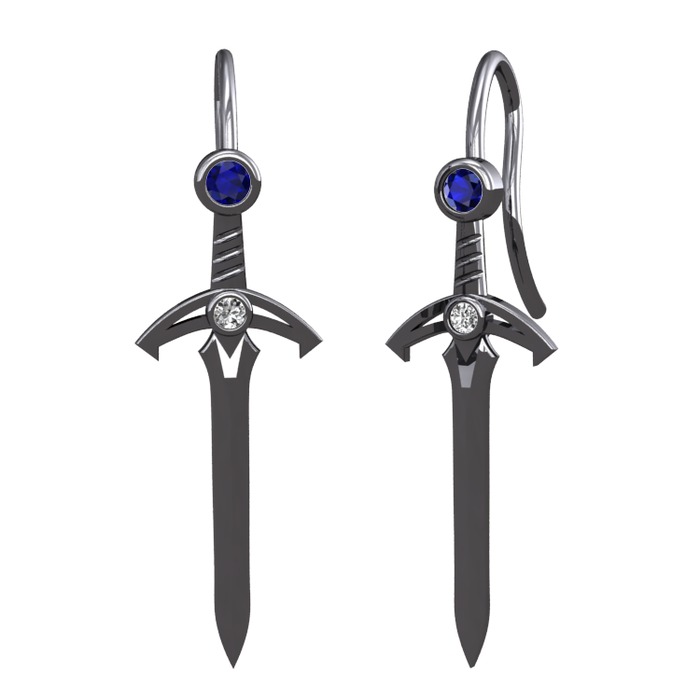 Lab safir ve beyaz zirkon 925 ayar siyah rodyum kaplama gümüş küpe