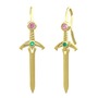 Pembe kuvars ve kök zümrüt 14 ayar altın küpe