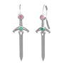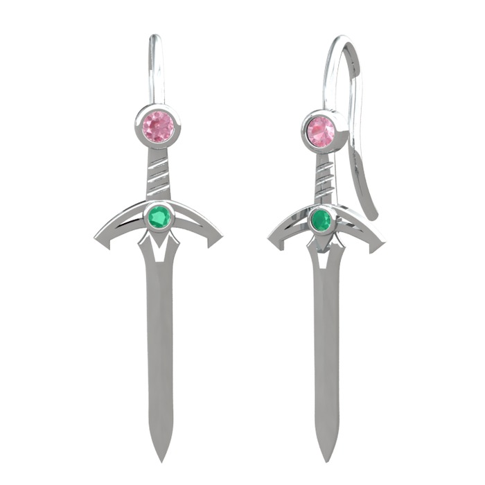 Pembe kuvars ve kök zümrüt 925 ayar gümüş küpe