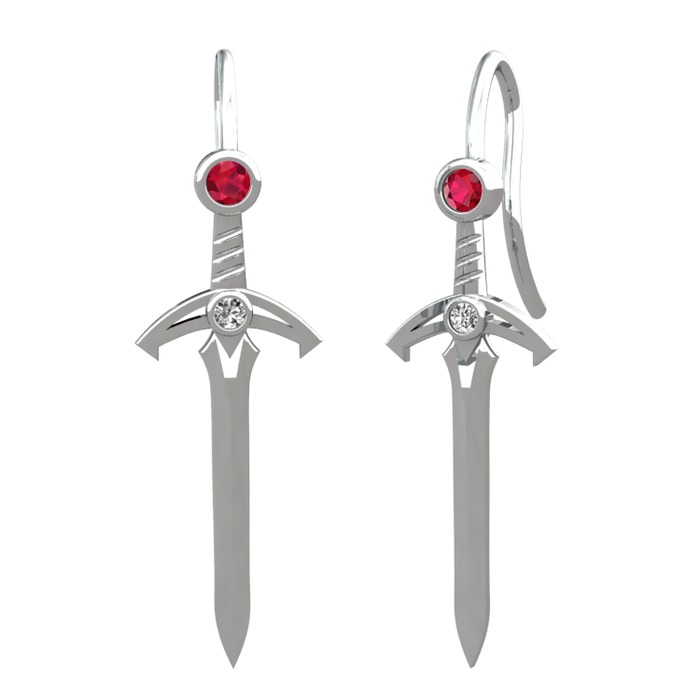 Rodolit garnet ve beyaz zirkon 925 ayar gümüş küpe