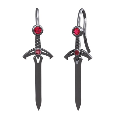 Rodolit garnet ve kök yakut 925 ayar siyah rodyum kaplama gümüş küpe