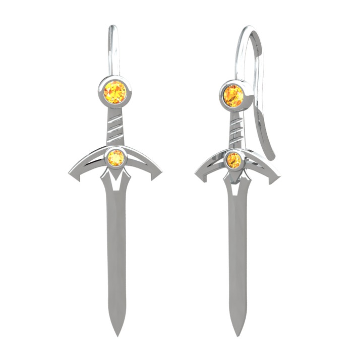 Sitrin 18 ayar beyaz altın küpe