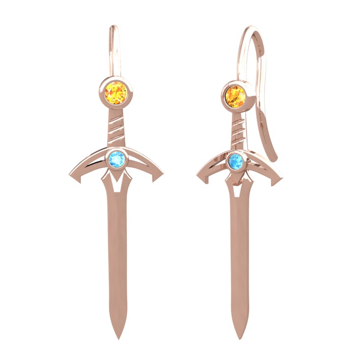Sitrin ve akuamarin 14 ayar rose altın küpe
