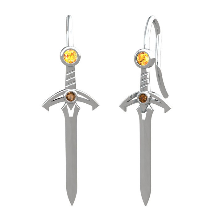 Sitrin ve dumanlı kuvars 18 ayar beyaz altın küpe