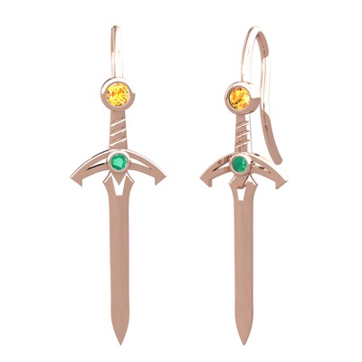 Sitrin ve kök zümrüt 8 ayar rose altın küpe