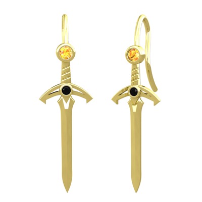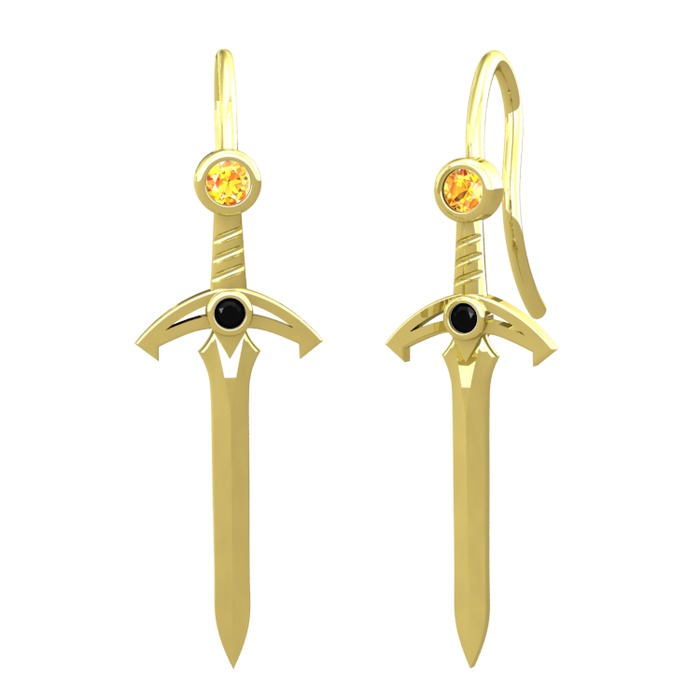 Sitrin ve siyah zirkon 18 ayar altın küpe
