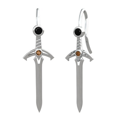 Siyah zirkon ve dumanlı kuvars 925 ayar gümüş küpe