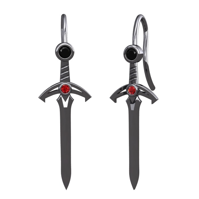 Siyah zirkon ve garnet 925 ayar siyah rodyum kaplama gümüş küpe