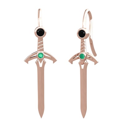 Siyah zirkon ve kök zümrüt 925 ayar rose altın kaplama gümüş küpe