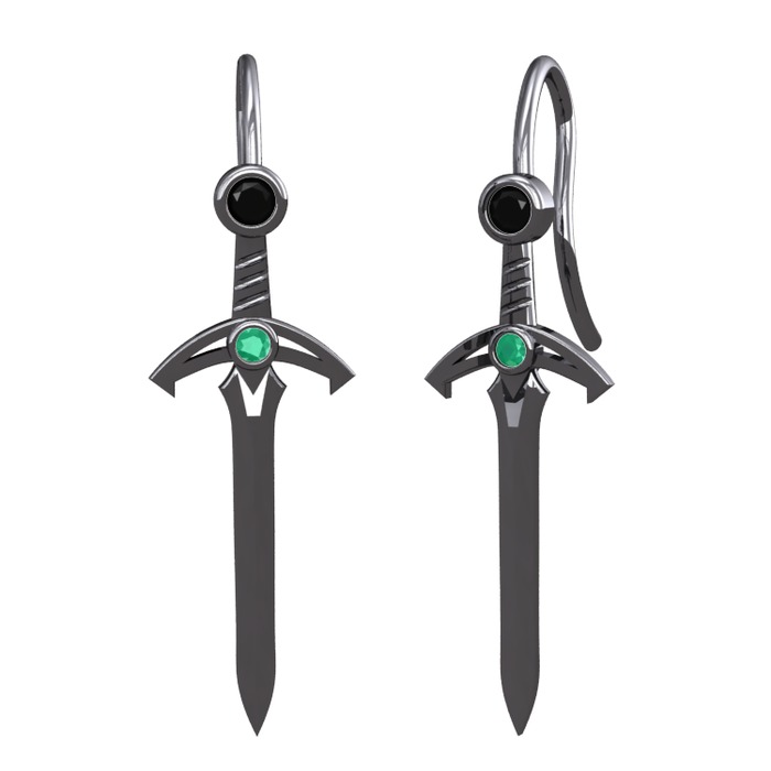 Siyah zirkon ve kök zümrüt 925 ayar siyah rodyum kaplama gümüş küpe