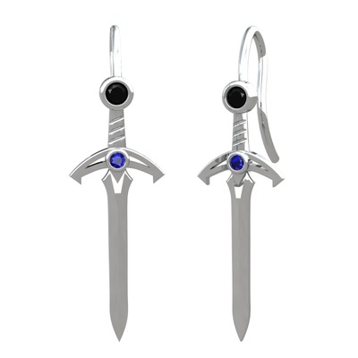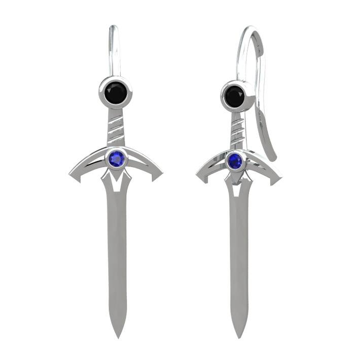 Siyah zirkon ve lab safir 14 ayar beyaz altın küpe