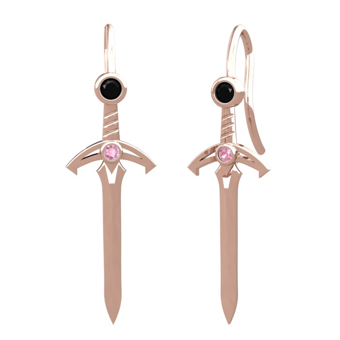 Siyah zirkon ve pembe kuvars 925 ayar rose altın kaplama gümüş küpe