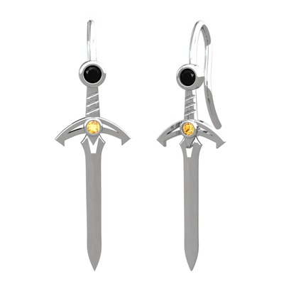 Siyah zirkon ve sitrin 14 ayar beyaz altın küpe