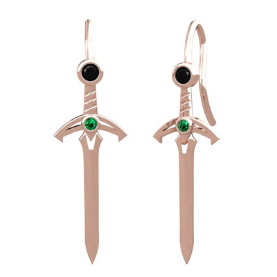 Siyah zirkon ve yeşil kuvars 925 ayar rose altın kaplama gümüş küpe