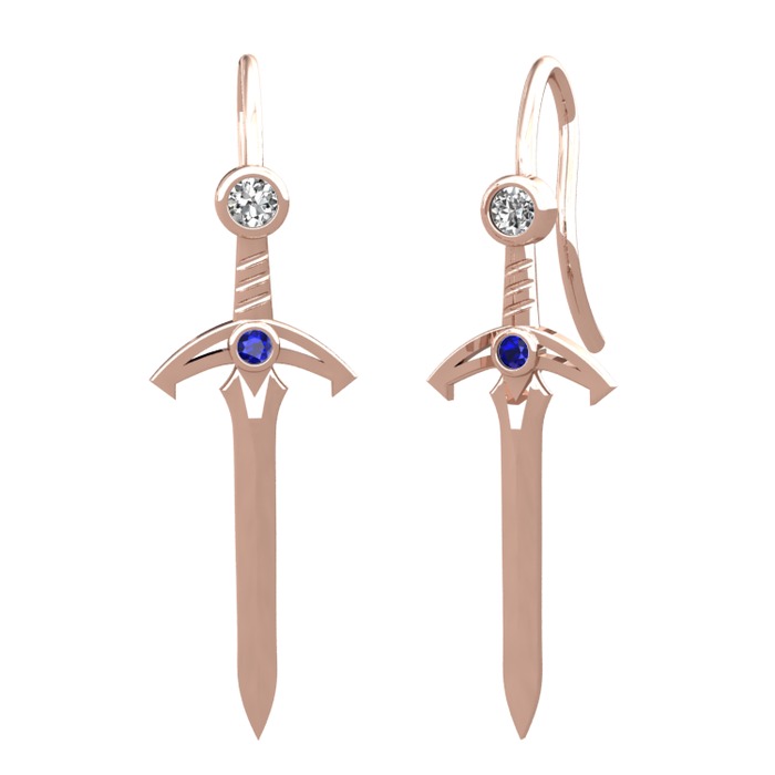 Swarovski ve lab safir 8 ayar rose altın küpe