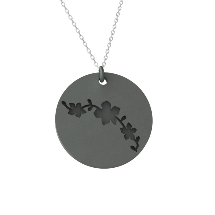 Kiraz Çiçeği Kolye - 925 ayar siyah rodyum kaplama gümüş kolye (40 cm beyaz altın rolo zincir)
