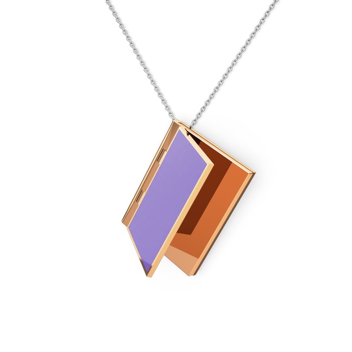 14 ayar rose altın kolye (Menekşe mineli, 40 cm beyaz altın rolo zincir)