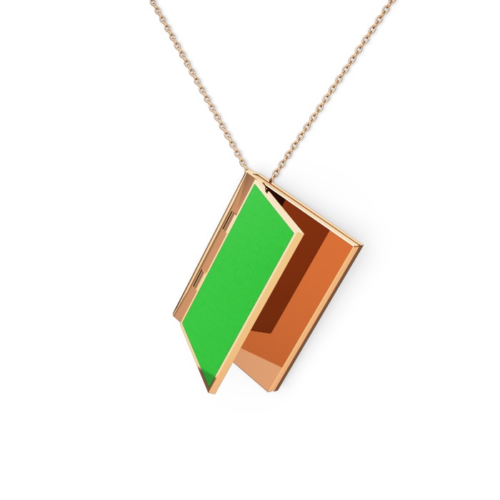 14 ayar rose altın kolye (Yeşil mineli, 40 cm gümüş rolo zincir)