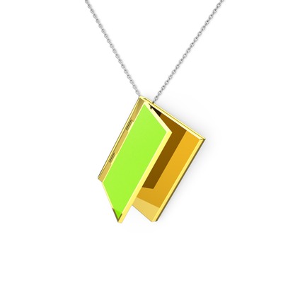 18 ayar altın kolye (Neon yeşil mineli, 40 cm beyaz altın rolo zincir)