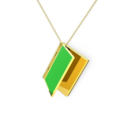 18 ayar altın kolye (Yeşil mineli, 40 cm altın rolo zincir)