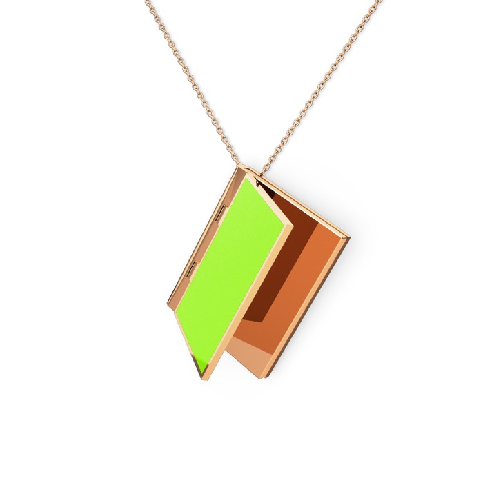 18 ayar rose altın kolye (Neon yeşil mineli, 40 cm rose altın rolo zincir)