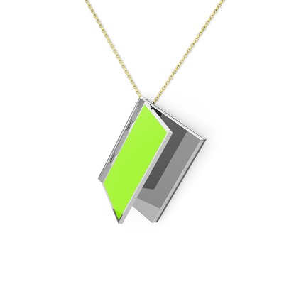 8 ayar beyaz altın kolye (Neon yeşil mineli, 40 cm gümüş rolo zincir)