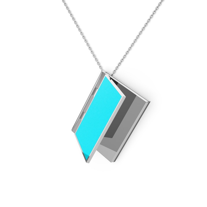 8 ayar beyaz altın kolye (Turkuaz mineli, 40 cm beyaz altın rolo zincir)