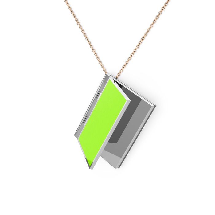 925 ayar gümüş kolye (Neon yeşil mineli, 40 cm rose altın rolo zincir)