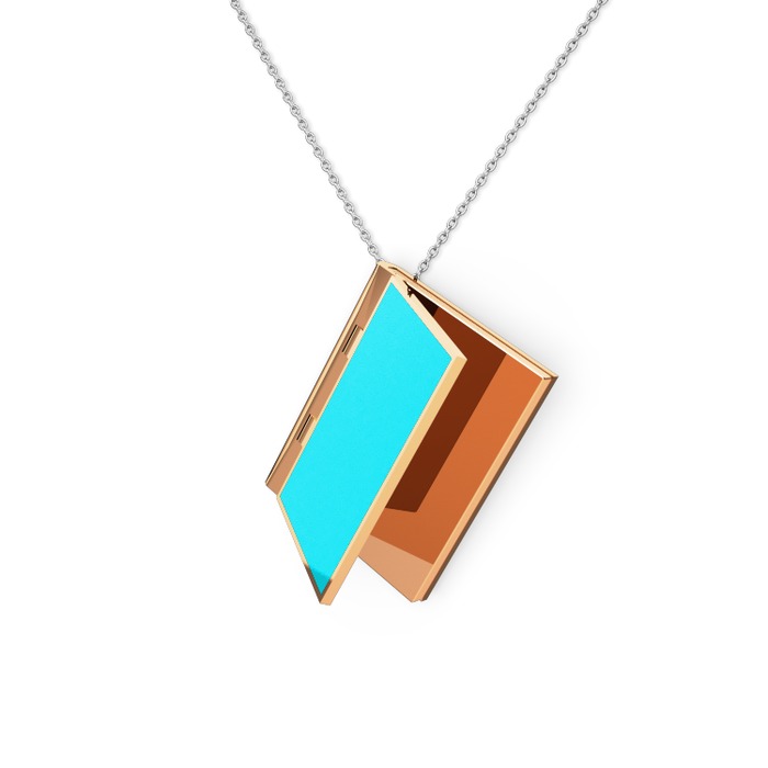 925 ayar rose altın kaplama gümüş kolye (Turkuaz mineli, 40 cm beyaz altın rolo zincir)