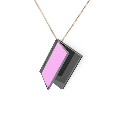 925 ayar siyah rodyum kaplama gümüş kolye (Açık pembe mineli, 40 cm rose altın rolo zincir)