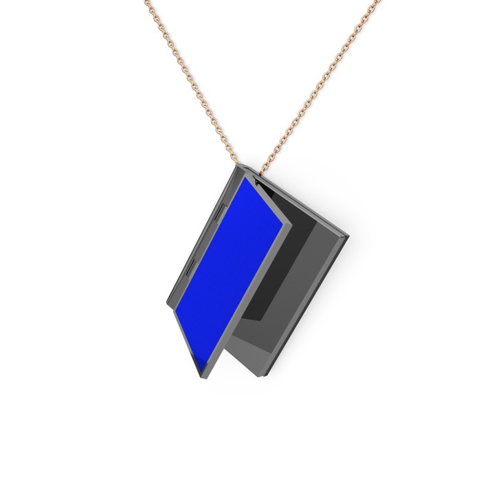 925 ayar siyah rodyum kaplama gümüş kolye (Lacivert mineli, 40 cm rose altın rolo zincir)