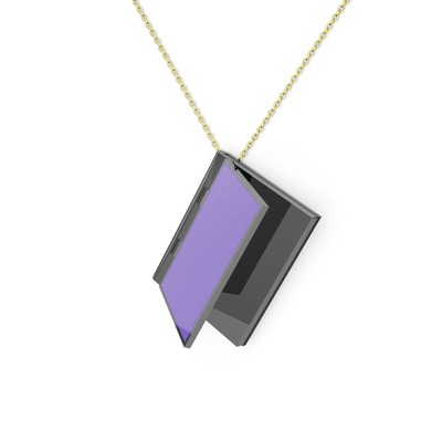 925 ayar siyah rodyum kaplama gümüş kolye (Menekşe mineli, 40 cm altın rolo zincir)