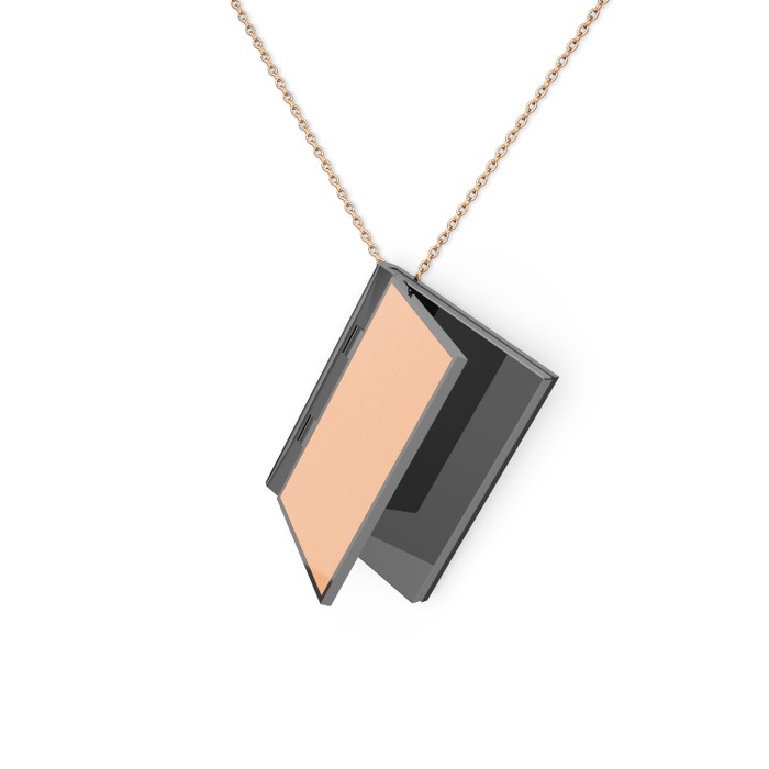 925 ayar siyah rodyum kaplama gümüş kolye (Pastel pembe mineli, 40 cm rose altın rolo zincir)