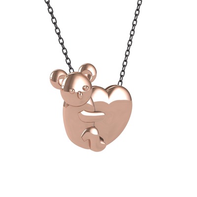Koala Kalp Kolye - 18 ayar rose altın kolye (40 cm gümüş rolo zincir)