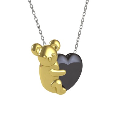 Koala Kalp Kolye - 8 ayar altın kolye (40 cm beyaz altın rolo zincir)