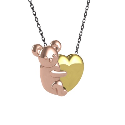 Koala Kalp Kolye - 925 ayar rose altın kaplama gümüş kolye (40 cm gümüş rolo zincir)