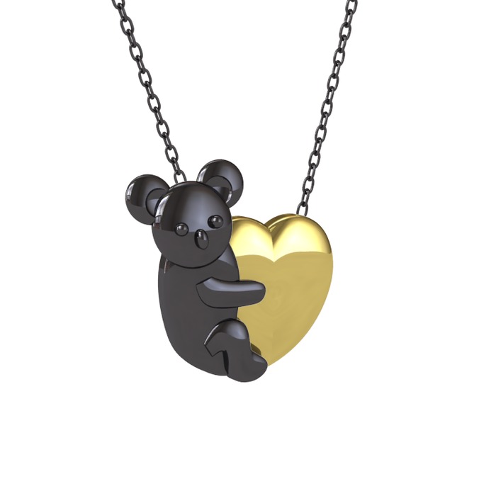 Koala Kalp Kolye - 925 ayar siyah rodyum kaplama gümüş kolye (40 cm gümüş rolo zincir)