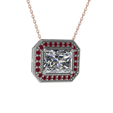 Garnet ve kök yakut 18 ayar beyaz altın kolye (40 cm rose altın rolo zincir)