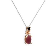 Kök yakut ve rodolit garnet 18 ayar rose altın kolye (40 cm gümüş rolo zincir)