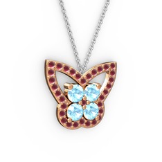 Akuamarin ve kök yakut 18 ayar rose altın kolye (40 cm gümüş rolo zincir)