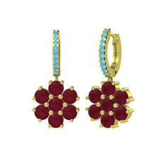 Akuamarin ve kök yakut 14 ayar altın küpe