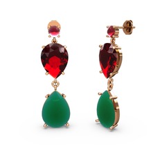Garnet, kök zümrüt ve kök yakut 18 ayar rose altın küpe
