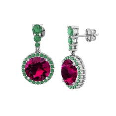 Kök zümrüt ve pembe kuvars 18 ayar beyaz altın küpe