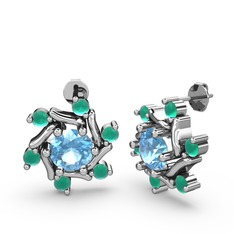Lab safir ve kök zümrüt 8 ayar rose altın küpe