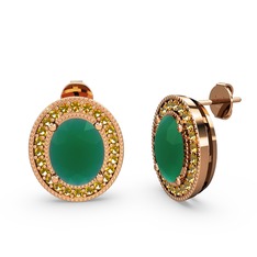 Kök zümrüt ve sitrin 8 ayar rose altın küpe