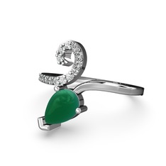 Beyaz zirkon, yeşil kuvars ve kök zümrüt 8 ayar beyaz altın yüzük